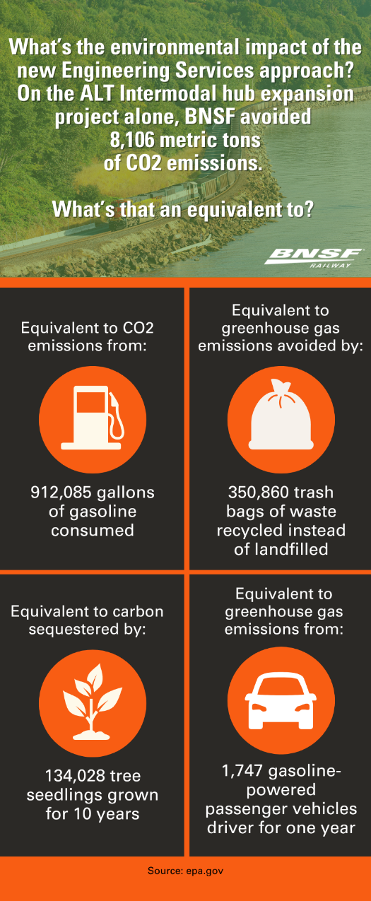 The recent expansion of our Alliance intermodal hub is a great example of how Engineering Services applies these sustainability principles to achieve results in a construction project.