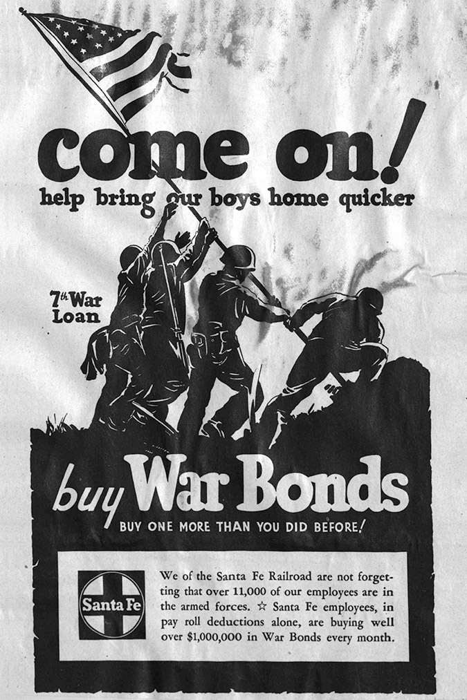 In addition, through the government’s payroll deduction “Victory Bond” program, Santa Fe employees purchased over $1,000,000 in wartime bonds per month, which would be the equivalent of over $14,000,000 today.