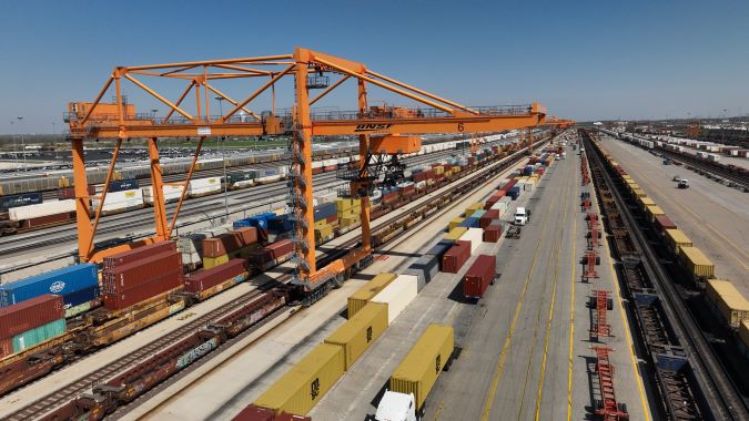 BNSF has North America’s largest intermodal facilities spread across our network, where we use cranes to load containers on and off trains for further movement by railroad or by truck to their final destination. Some of these are wide-span electric cranes.