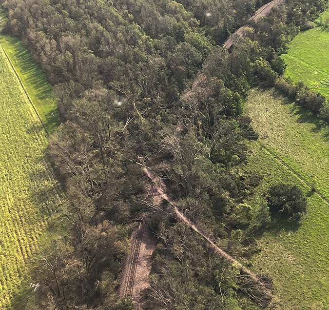 At certain speeds and conditions, wind can be strong enough to knock unloaded coal and grain cars off the track. Stacked, empty containers can act like a sail, literally lifting the cars. Damaging winds can also blow down power lines and trees or propel other obstructions into a train or its path.
