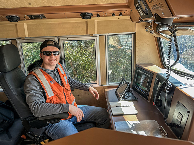 Wilson’s job comes with a lot of responsibility, and he enjoys it. His favorite days involve the heavy work of putting trains back together. Recently he had, in his words, a fun day when he “cut” a train for a crossing (separated to create an opening for vehicles to temporarily cross through).
