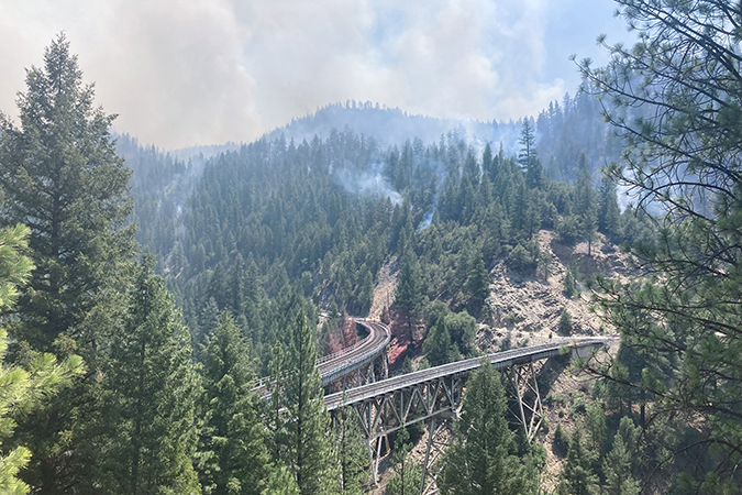 BNSF trains run north and southbound between Seattle and Los Angeles through the affected area. Since the Dixie Fire, named for the road where it started, began burning, our teams have worked side by side with outside agencies to control what can be controlled – and get out of the way when we can’t.