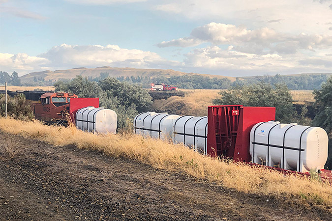 To combat wildfires, we have tank cars full of water staged in areas prone to fire conditions. And in the Pacific Northwest, we have two unique firefighting “weapons” in our arsenal – specially equipped trains that are an effective and innovative approach to fighting fires. Both are based in Washington; while the trains’ capabilities vary somewhat, equipment is similar.