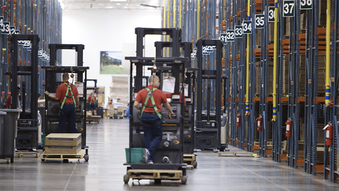 Inbound products like industrial, janitorial and packing materials such as envelopes, poly bags, corrugated boxes and more are first sorted at Uline’s Pleasant Prairie, Wisconsin, warehouses. As sales orders are submitted from across the country, Uline ships to their domestic distribution network, including Seattle, Southern California, and Dallas-Fort Worth.